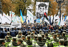 Ακροδεξιοί διαδηλώνουν στο Κίεβο κατά του φιλοδυτικού προέδρου Ποροσένκο, υποστηρίζοντας τον Σαακασβίλι, πρώην πρόεδρο της… Γεωργίας. Με τη σειρά, για να μην μπερδευτούμε: το 2014...