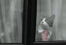 Ο γάτος της φωτογραφίας φοράει… τα καλά του και ποζάρει πίσω από ένα παράθυρο της πρεσβείας του Εκουαδόρ στο Λονδίνο. Το συμπαθέστατο ζωάκι ανήκει...
