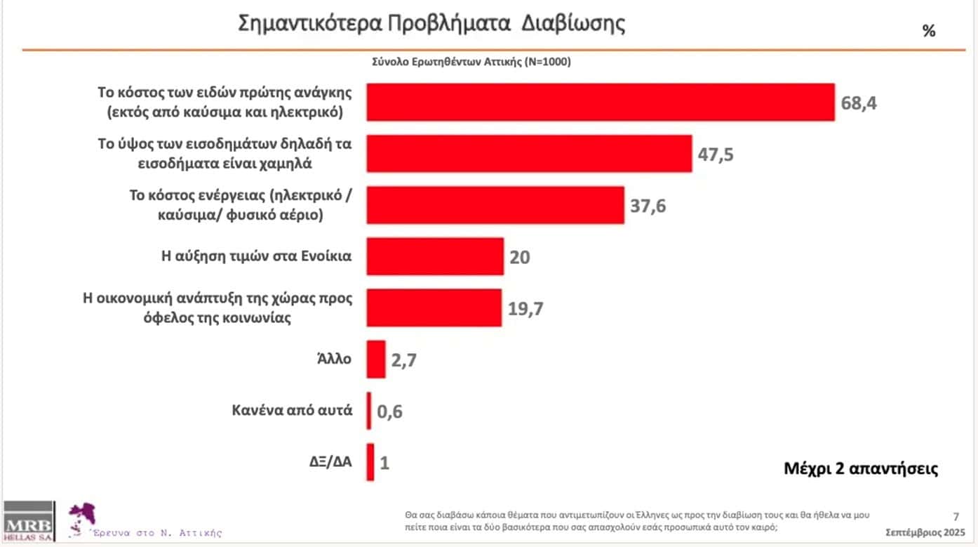 Το ενδεχόμενο δημιουργίας νέων κομμάτων επίσης δεν συγκινεί. Η ομιλία Τσίπρα στη ΔΕΘ δεν δημιούργησε θετικές εντυπώσεις: σε καμία μέτρηση δεν ξεπερνά το 20% θετικών ή σχετικά θετικών απαντήσεων, ενώ σε όσες μετρούν και αν οι πολίτες την παρακολούθησαν, 1 στους 2 ή 3 απάντησε πως δεν την παρακολούθησε. Στην πρόθεση ψήφου, ένα πιθανό κόμμα Τσίπρα δεν υπερβαίνει το 20% (εδώ πρέπει να λάβουμε υπόψη και τα μιντιάκα-δημοσκοπικά «σπρωξίματα» από μερίδες της ελληνική ελίτ αλλά και τον πονηρό τρόπο που διατυπώνονται τα ερωτήματα), ενώ το αντίστοιχο του Σαμαρά κινείται στο 10%. Αυτό που θα έπρεπε να προβληματίσει περισσότερο το πολιτικό σύστημα –και ιδίως την αντιπολίτευση– είναι πως η λαϊκή δυσαρέσκεια, αν και κατευθύνεται προς την κυβέρνηση, εδράζεται σε υπαρκτά και κρίσιμα ζητήματα, για τα οποία καμία δύναμη δεν πείθει ότι διαθέτει πρόταση καλύτερη από της Ν.Δ., ακόμη κι αν η κυβέρνηση θεωρείται κάτι περισσότερη από ακατάλληλη. Οι πολίτες κατατάσσουν σταθερά πρώτο πρόβλημα την ακρίβεια (άνω του 50%), ενώ στις πρώτες θέσεις βρίσκονται επίσης η διαφθορά και η δικαιοσύνη, η οικονομία, το ΕΣΥ, οι μισθοί, τα εθνικά θέματα και το μεταναστευτικό. Με λίγα λόγια, η βεντάλια και η σημασία των προβλημάτων είναι τέτοια που ακόμη και μικρές βελτιώσεις θα έμοιαζαν σημαντικές για μια μερίδα πολιτών.