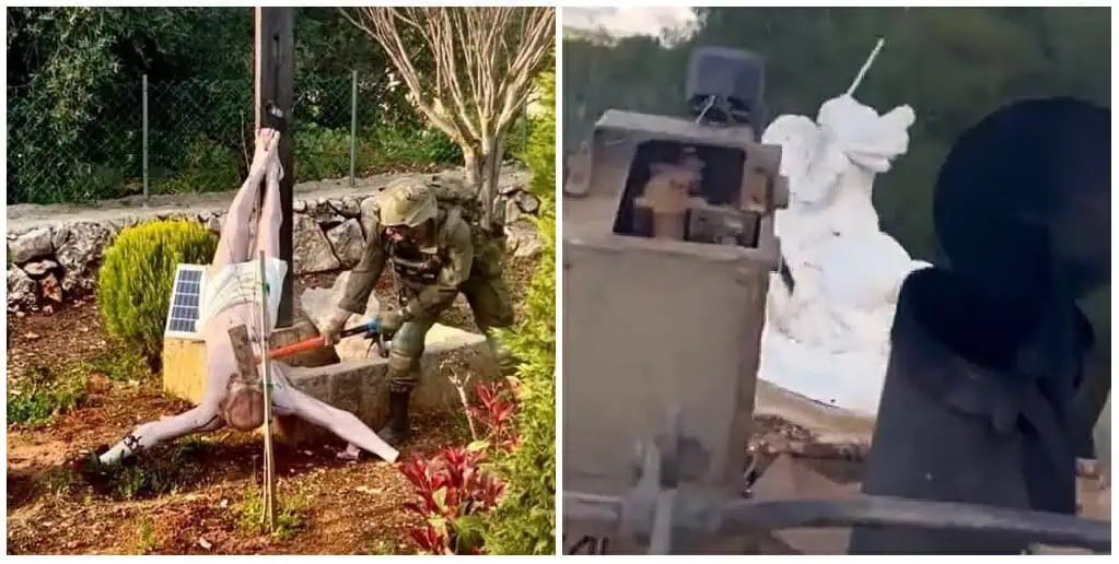 Δεν πέρασε ούτε μια μέρα, και στο διαδίκτυο κυκλοφόρησε ένα βίντεο, από το χωριό Γιαρούν αυτή τη φορά, πάλι στον νότιο Λίβανο. Αυτό το είχαν αναρτήσει με καμάρι οι ίδιοι οι κατοχικοί στρατιώτες για να δείξουν πώς, με μία στρατιωτική μπουλντόζα, γκρέμισαν το άγαλμα του έφιππου Αγίου Γεωργίου. Γνώριζαν κι αυτοί πολύ καλά ότι στη χειρότερη περίπτωση η συμμορία Νετανιάχου δημοσίως θα τους επιτιμήσει, και έπειτα θα τους επιβραβεύσει.