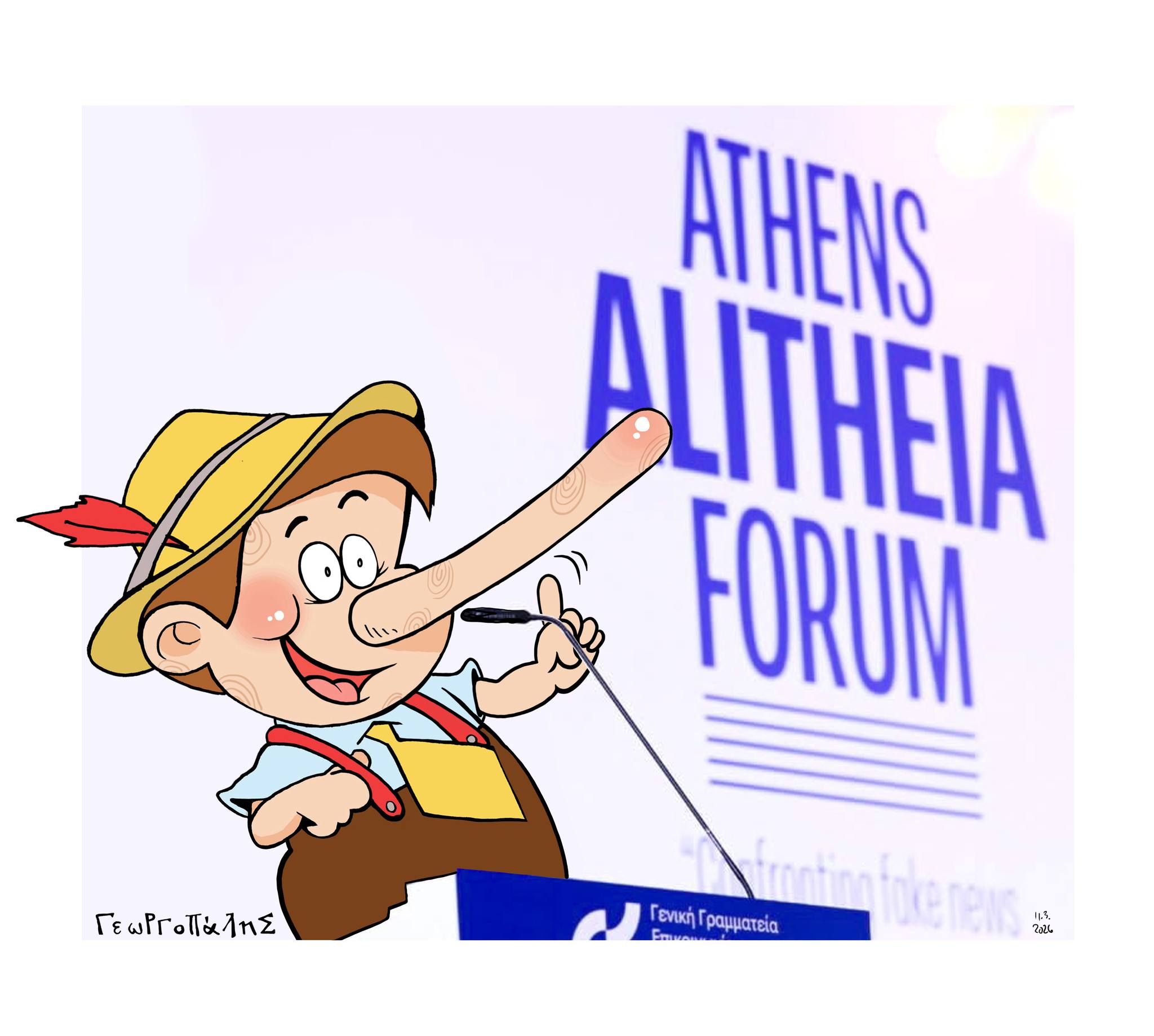 Με τον οργουελικό τίτλο Athens Alitheia Forum, πραγματοποιήθηκε στην Αθήνα, το συνέδριο για τα fake news που οργανώθηκε από την Γενική Γραμματεία Επικοινωνίας και Ενημέρωσης. Στα πάνελ πέρα από στελέχη της κυβέρνησης, και «έγκριτοι δημοσιογράφοι» που διαπρέπουν από τα Μέσα που εργάζονται, για διασπορά ψευδών ειδήσεων, κυβερνητικής προπαγάνδας, επιθέσεις δολοφονίας χαρακτήρα σε «αντιφρονούντες», διαπλοκή με επιχειρηματικά συμφέροντα και κρατικό χρήμα.