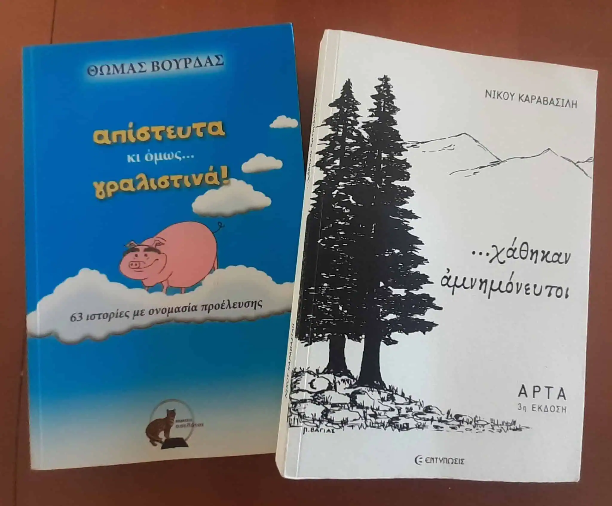 Ο ένας από τους συγγραφείς, ο Νίκος Χ. Καραβασίλης, δεν είναι πια στη ζωή, όμως η οικογένειά του έχει φροντίσει να εκδίδει τα βιβλία του. «…χάθηκαν αμνημόνευτοι» ο τίτλος της συλλογής διηγημάτων που κυκλοφορεί από τις εκδόσεις Εντύπωσις στην Άρτα.