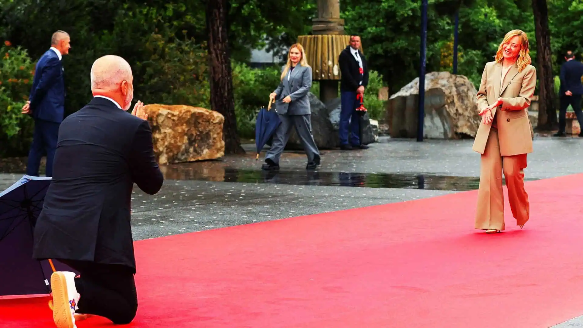 Το σκηνικό με τον Αλβανό πρωθυπουργό Έντι Ράμα να γονατίζει πάνω στο κόκκινο χαλί για να υποδεχθεί την Ιταλίδα πρωθυπουργό Τζόρτζια Μελόνι στη Σύνοδο Κορυφής της Ευρώπης, έχει πάρει έκταση και έχει σχολιαστεί ευρέως, μεταξύ άλλων και στην Ιταλία. Σε ένα ντιμπέιτ, στο οποίο συμμετείχε και ο πρώην πρωθυπουργός της Ιταλίας Ματέο Ρέντσι, ένας καθηγητής ιστορίας σχολίασε τη γονυκλισία αναφερόμενος σε ένα μεσαιωνικό έθιμο: όταν ο βασιλιάς πλησίαζε, ο υποτελής άρχοντας έπρεπε να παραμένει γονατιστός μέχρι ο βασιλιάς να του κάνει νόημα να σηκωθεί. Αυτό ήταν που συνέβη και σε αυτή την περίπτωση, κατά τα λεγόμενά του καθηγητή: ο Αλβανός πρωθυπουργός σηκώθηκε όταν η Μελόνι του είπε «αρκετά». Πάντως ο Ματέο Ρέντσι, που μίλησε για «φάρσα», δεν ήταν θυμωμένος με τον «υποτελή», αλλά με τη «βασίλισσα», η οποία του έδωσε 800 εκατ. ευρώ για τα ιταλικά στρατόπεδα συγκέντρωσης μεταναστών επί αλβανικού εδάφους.