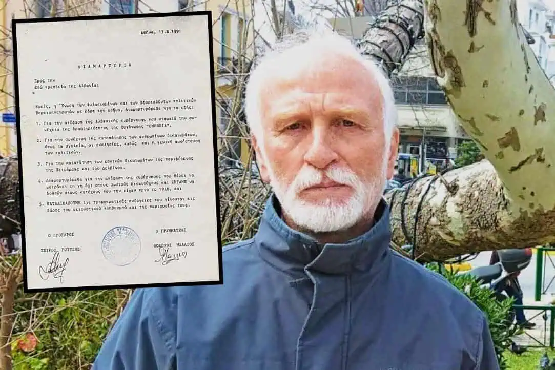 Στις 13/8/1991 πραγματοποιήσαμε την πρώτη μας διαμαρτυρία έξω από την Αλβανική Πρεσβεία στην Αθήνα. Το συλλαλητήριο οργανώθηκε σε ένδειξη συμπαράστασης στην πολιτική μας οργάνωση ΔΕΕΕΜ Ομόνοια, η οποία εκείνη την περίοδο ήταν υπό διωγμό από την αλβανική κυβέρνηση. Εμείς, ως Αλβανοί πολίτες, απαιτούσαμε να γίνουν σεβαστά όλα τα δικαιώματα πού απορρέουν από Διεθνείς (Πολυμερείς και Διμερείς) Συνθήκες και Συμβάσεις. Το κτήριο της Πρεσβείας ήταν αμπαρωμένο, δεν ακουγόταν ψυχή. Όμως, η υπηρεσία ασφαλείας έκανε καλά τη δουλειά της. Άνθρωποι πίσω από τις κουρτίνες των παραθύρων τραβούσαν βίντεο και φωτογραφίες που χρησιμοποιήθηκαν ως «αποδεικτικά στοιχεία» στη δίκη μας το 1994! Προβήκαμε και σ’ άλλες παρόμοιες πορείες. Επίμονα χτυπάγαμε πόρτες αρμοδίων του ελληνικού κράτους. Επιδιώκαμε να μιλήσουμε σ’ όλους. Καταθέταμε προτάσεις, απαιτούσαμε λύσεις για τα ακανθώδη προβλήματα. Για τούς περισσότερους από αυτούς, ήμασταν εκτός τόπου και χρόνου… Δεν αισθανόμασταν πως διαπραγματευόμασταν, αφού η διαπραγμάτευση γίνεται από δύο μέρη που έχουν αντίθετα συμφέροντα. Πιστεύαμε πως εάν η Μάνα Ελλάδα μάθει για το πού πονάμε, θα μας γιάνει τον πόνο. Αυτή τη χρονική περίοδο, από τους πολιτικάντηδες χαρακτηριστήκαμε «αντάρτες». Όμως δεν αλλάξαμε στάση. Οδεύαμε πάντα ευθεία, δεν κάναμε ζιγκ-ζαγκ. Αυτή η πορεία ενοχλούσε πολλούς. Με το πέρασμα του χρόνου καταλάβαμε περισσότερα, πως δηλαδή «η Πατρίδα (διαμέσου των κυβερνώντων της) σιγά-σιγά από Μάνα μετατράπηκε σε κακιά Μητριά για τους αγωνιστές».