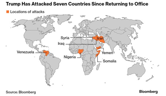1 Οι συνεχείς παρεμβάσεις του προέδρου Τραμπ στο πλανητικό γίγνεσθαι, μάλιστα με τον γνωστό επικοινωνιακό τρόπο (έχει προλάβει να επιτεθεί σε επτά χώρες από την ημέρα που επανήλθε στον Λευκό Οίκο σύμφωνα με το Γράφημα 1 του Bloomberg, να απειλήσει με διάφορους τρόπους πολλές χώρες του κόσμου (μεταξύ των οποίων η Ε.Ε., το Μεξικό, η Κολομβία, η Κούβα, ο Καναδάς, η Γροιλανδία, ο Παναμάς, αλλά και να καταπιεί τις απειλές του σε δυνάμεις όπως η Κίνα, και η Ρωσία [1]) έχουν αποσπάσει την προσοχή των παρατηρητών από τις επιδόσεις του (μέχρι σήμερα) αναφορικά με εγχώρια οικονομικά ζητήματα και την υποσχεθείσα αύξηση της ευημερίας του αμερικανικού λαού. Ας δούμε την εξέλιξη σε ορισμένες βασικές οικονομικές μεταβλητές.