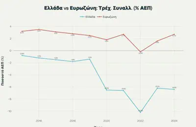 Σε σύγκριση με τον μέσο όρο των χωρών της Ευρωζώνης, επειδή η κυβέρνηση αρέσκεται στις συγκρίσεις όταν αυτές είναι υπέρ της, την περίοδο 2016-2020 υπήρχε πλεόνασμα 3,0% ΑΕΠ και την περίοδο 2021-2024 επίσης πλεόνασμα ύψους 2,8% ΑΕΠ!