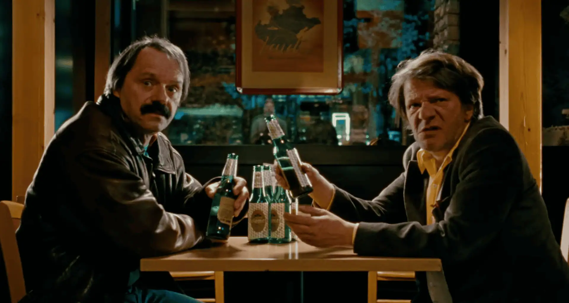 Άλλοτε προλετάριοι, υπάλληλοι στο τοπικό εργοστάσιο κατασκευής γυαλιών ηλίου, που έμπλεξαν σε μικροκομπίνες, με το μυθικό ίνδαλμά τους Τζένιο, να πληρώνει το τίμημα, προστατεύοντας τα φιλαράκια του, χωρίς να καταδώσει. Αυτή η «μπέσα» που τους δένει, επεκτείνεται και προς τον άβγαλτο σγουρομάλλη Τζούλιο, σε μια εξίσου προστατευτική, σχεδόν πατρική συμπαράσταση, στην κατάθλιψη της απόρριψης, από την όμορφη συμφοιτήτριά του Τζούλια. Αξιοσημείωτη η νότια προφορά του, που σχολιάζεται αρνητικά από έναν κόμη, τονίζοντας τις ρατσιστικές προκαταλήψεις βορά-νότου. Ο 65άρης Τζένιο, η ιστορία του οποίου ξετυλίγεται κυρίως μέσα από τις αφηγήσεις των δυο φίλων, γόνος μιας από τις τελευταίες αγροτικές οικογένειες της περιοχής, ήταν αυτός που τους ταξίδεψε πρώτη φορά εκτός χώρας, στο Οκτόμπερφεστ στη Γερμανία και στους οίκους ανοχής, στα σύνορα με την Αυστρία.