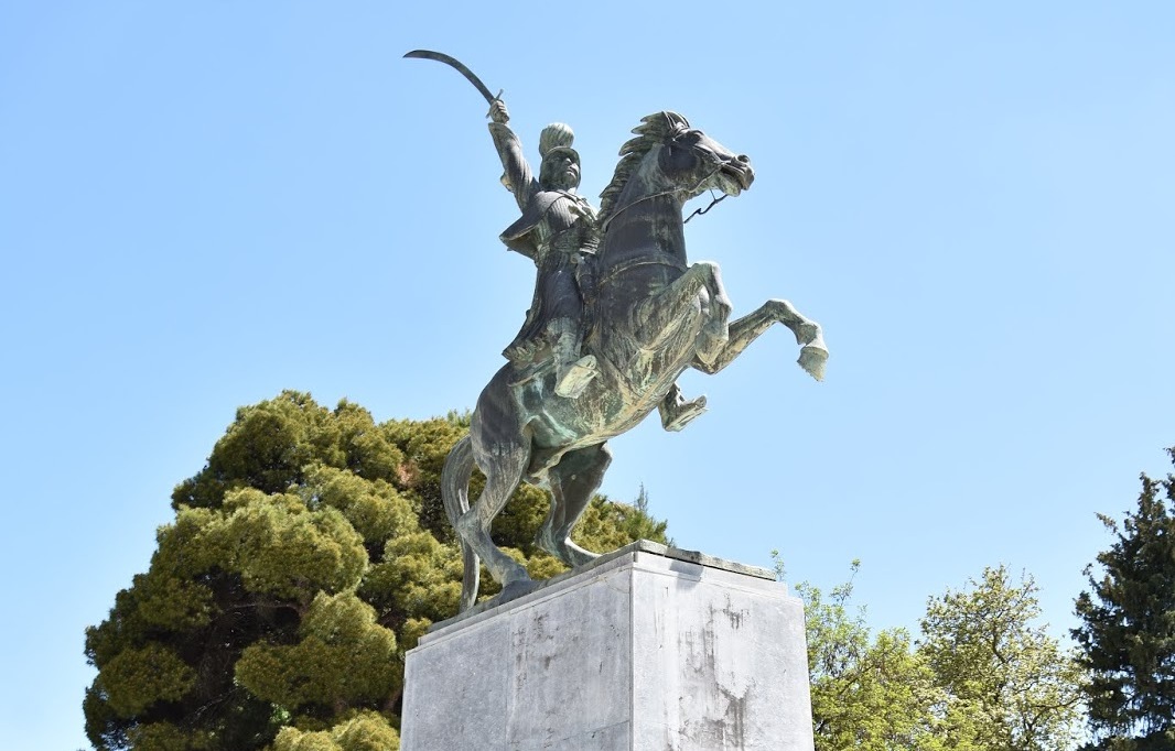 Ένα κρυφό επαρχιώτικο καμάρι μας έμεινε, η ασυνείδητη επαφή με τον Γέρο πάνω στο άλογο, με τη σπάθα να οδηγεί τους μαχητές. Εκεί, στην Πλατεία Άρεως, πάνω στα θαμμένα ερείπια του Σεραγιού του Χουρσίτ, από το 1971, στηρίζεται σε βάθρο που έγινε ταφικό μνημείο, από το 1993, όπου έκτοτε φυλάσσονται σε κρύπτη τα οστά του Γενάρχη. Από τις 11/2 όμως, ο έφιππος ανδριάντας αποκαθηλώθηκε.