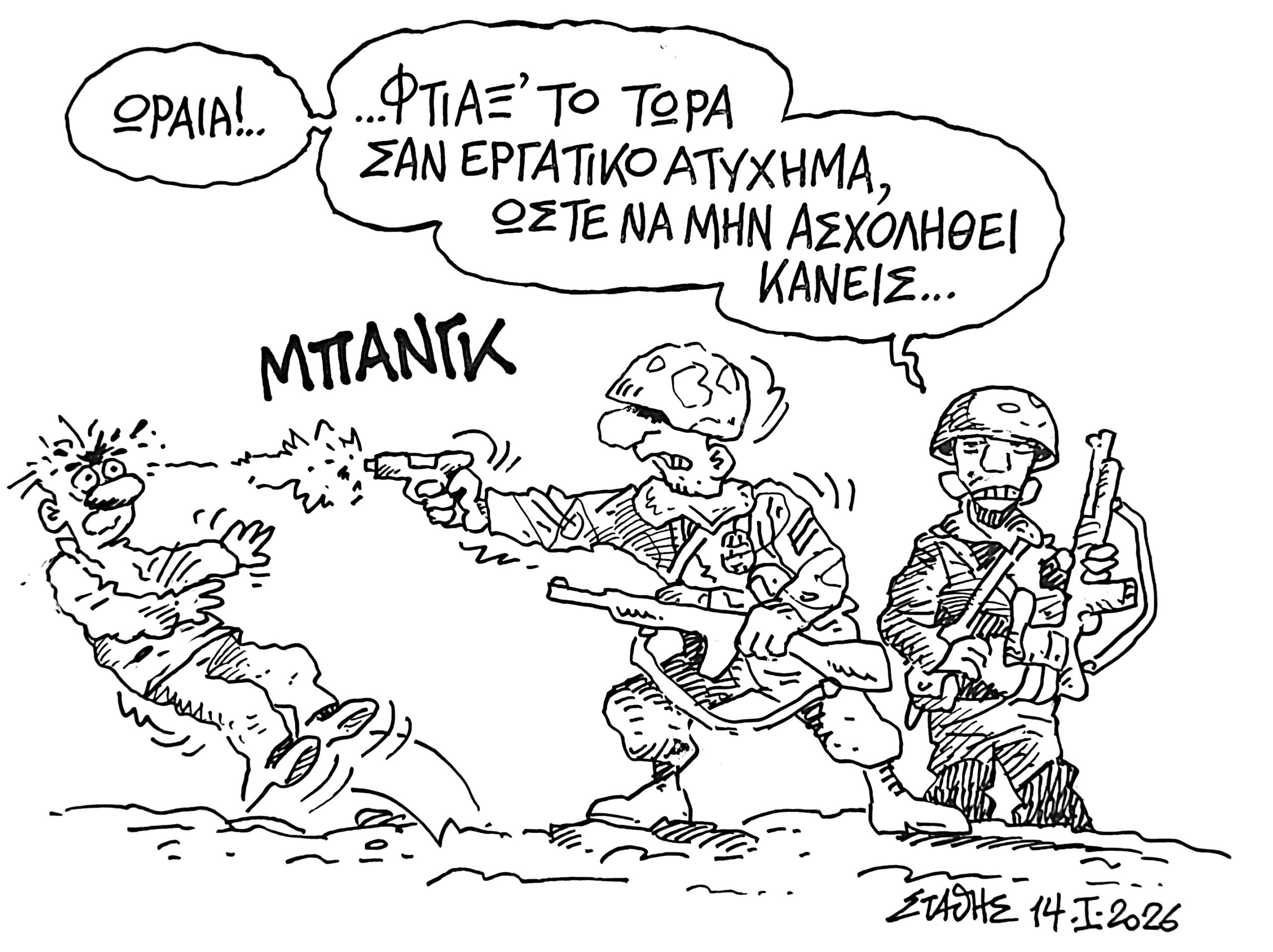 Το ερώτημα είναι: τι γράφει αυτή η σημαία πάνω της; «Ούτε δεξιά, ούτε αριστερά»;