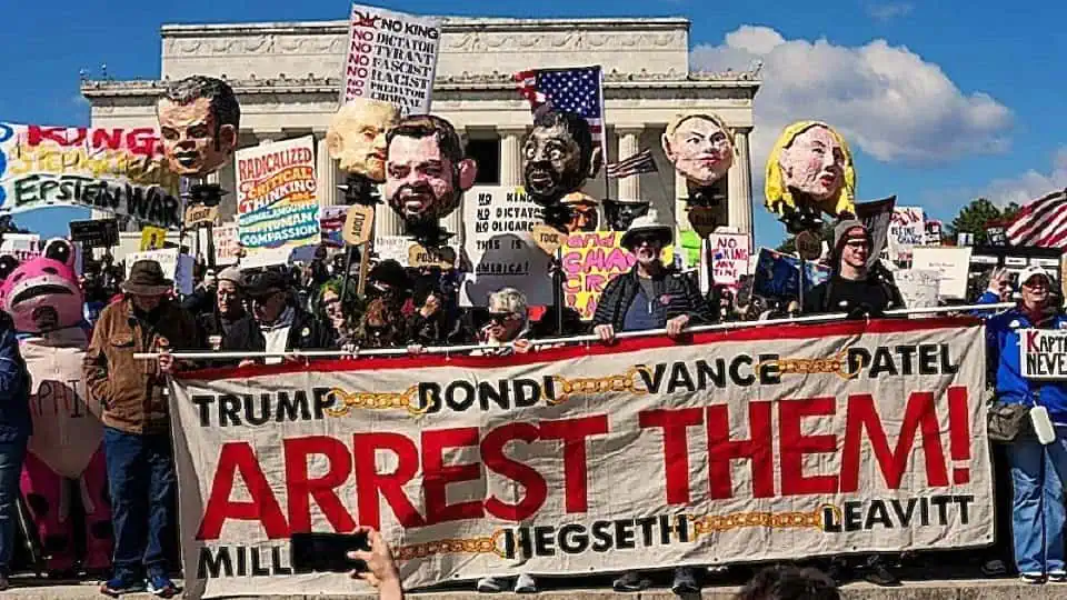 Υπολογίζεται ότι 8 με 9 εκατομμύρια Αμερικανοί πήραν μέρος στην κινητοποίηση No Kings, σε πάνω από 3.300 πόλεις και κωμοπόλεις των ΗΠΑ. Πρόκειται για ιστορικών διαστάσεων γεγονός, και όντας τέτοιο μπορεί κανείς να πει πως μάλλον υποτιμήθηκε από τα διεθνή ΜΜΕ. Βέβαια εκπρόσωπος του Λευκού Οίκου δήλωσε πως είναι αδιάφορες αυτές οι «συνεδρίες θεραπείας για το Σύνδρομο Αντιτραμπικής Παράνοιας»! Αλλά πολλοί Ρεπουμπλικανοί παράγοντες ταρακουνήθηκαν από το εύρος των συγκεντρώσεων. Σε κάθε περίπτωση, ήταν η τρίτη και μεγαλύτερη ως τώρα κινητοποίηση αυτού του είδους από την έναρξη της δεύτερης προεδρικής θητείας του Τραμπ.