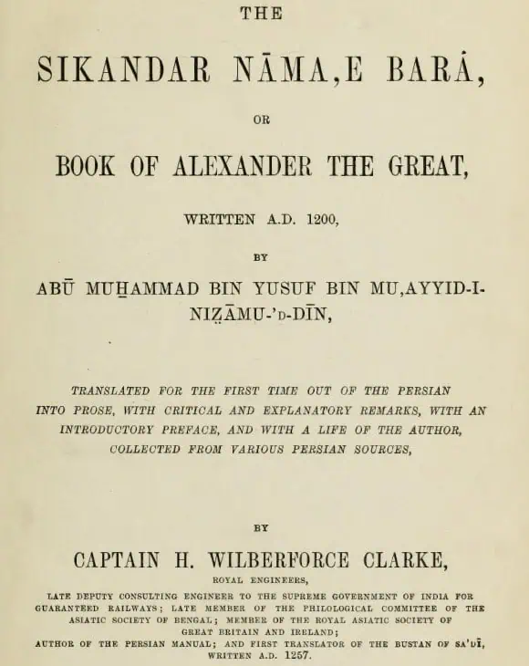 Μάλιστα, σκεφτόμουν αυτές τις μέρες λόγω επικαιρότητας το μεγάλο ιρανικό έπος 10.000 στίχων που έχει τίτλο «Το βιβλίο του Μέγα Αλέξανδρου» ενός από τους πιο σημαντικούς ποιητές του Ιράν, του Νιζαμί, γραμμένο πριν από εννιακόσια περίπου χρόνια, που μεταφράστηκε στα αγγλικά και κυκλοφόρησε το 1881 σε ένα μεγάλο βιβλίο με 900 σελίδες, ένα έργο τελείως άγνωστο στην Ελλάδα.