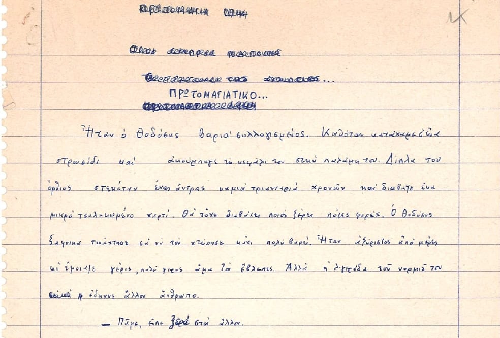 Και πριν προλάβει να το τραβήξει ο Θοδόσης, το άρπαξε και το φίλησε ζεστά, μουσκεύοντάς το με τα δάκρυά του.