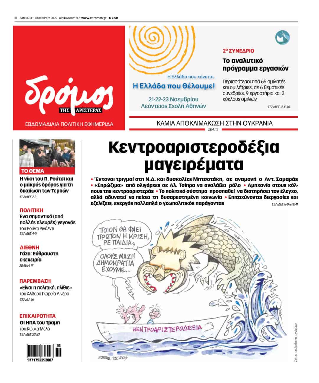Το πρωτοσέλιδο του Δρόμου που κυκλοφορεί (11/10/2025)