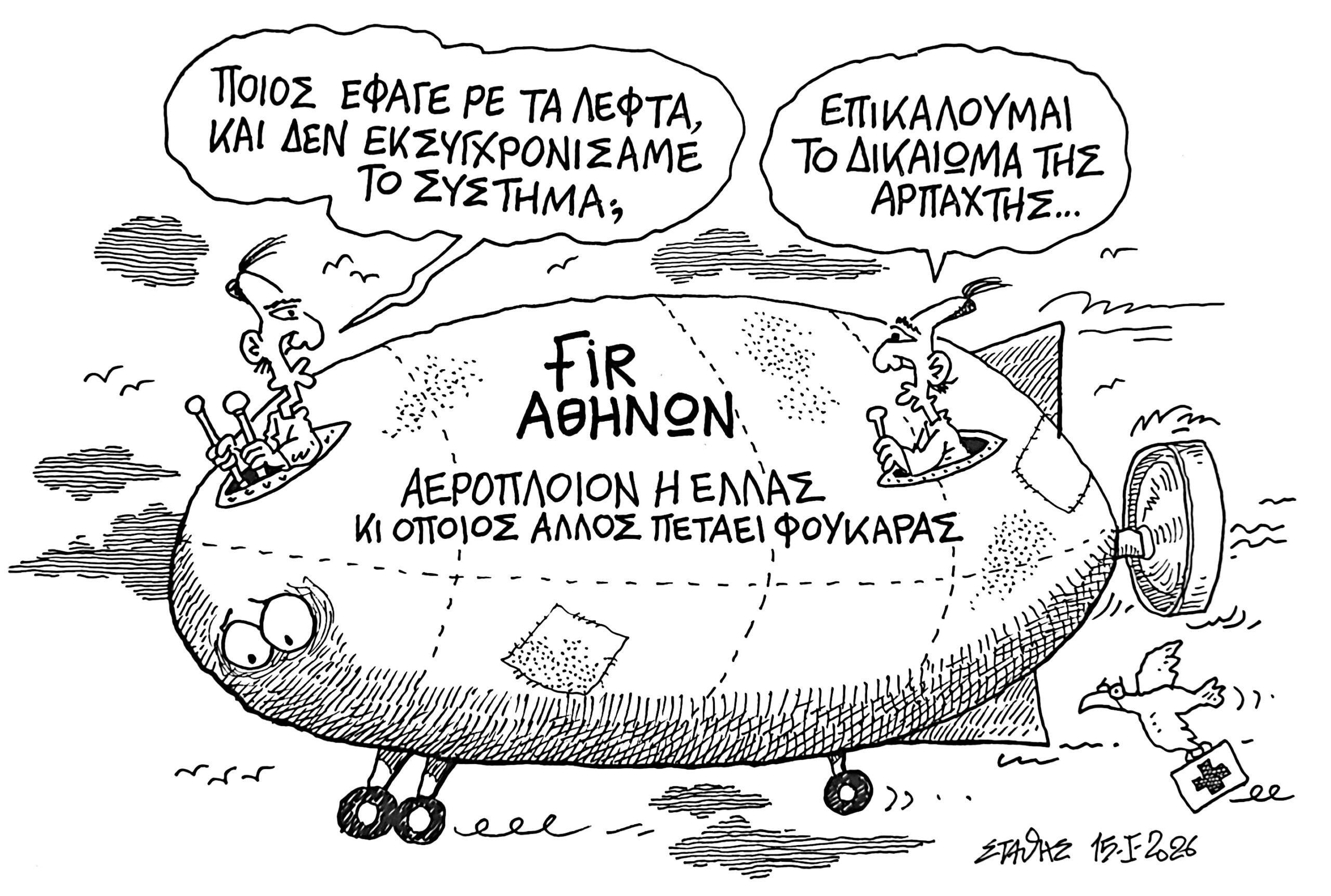 Σκίτσο του Στάθη Σταυρόπουλου από τη στήλη «Στην αυλή των θαυμάτων» του Δρόμου Δημοσιεύθηκε στις 17 Ιανουαρίου 2026.
