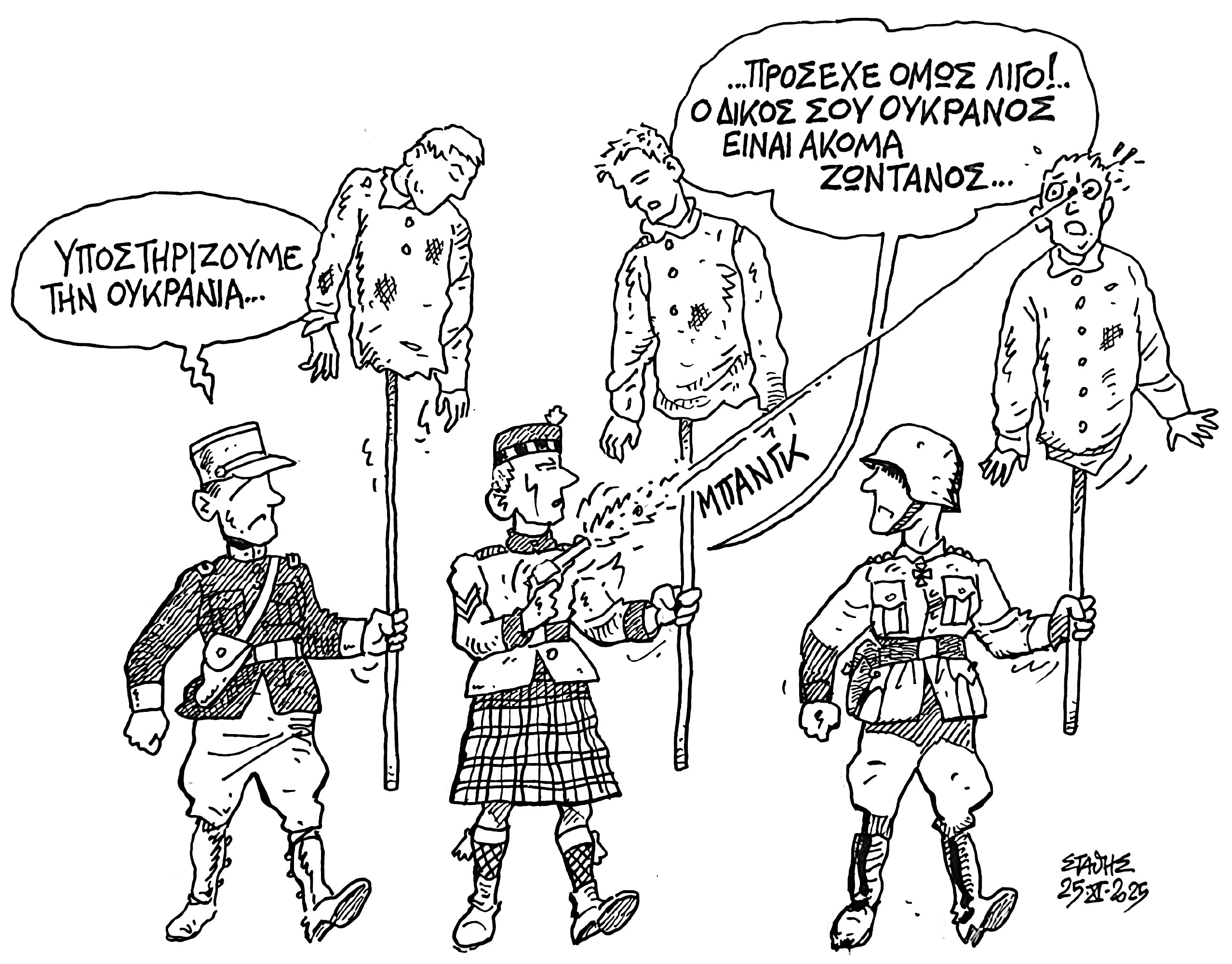 Σκίτσο του Στάθη Σταυρόπουλου από τη στήλη «Στην αυλή των θαυμάτων» του Δρόμου Δημοσιεύθηκε στις 29 Νοεμβρίου 2025.