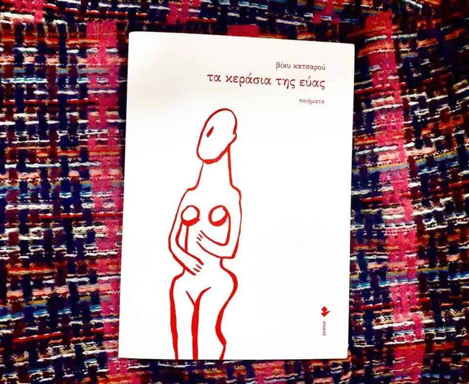 Στο ίδιο πλαίσιο, με μια δική της διαφορετική και πρωτότυπη οπτική κινείται και μια νέα ποιήτρια η Βίκυ Κατσαρού με την συλλογή «Τα κεράσια της Εύας» που κυκλοφόρησε πρόσφατα από τις εκδόσεις Ιωλκός.